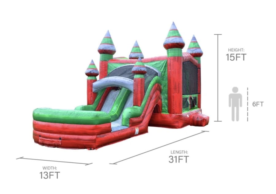 Bring non-stop action to your event with the Fire Dragon Combo wet/dry. Book the Sky Jump Inflatables Fire dragon combo wet/dry in San Antonio for a dragon-themed centerpiece that combines a roomy bounce area and an exciting slide. Bright red and green castle styling captures imaginations. Mesh sides keep air flowing and parents watching easily. Perfect for birthdays, school events, church gatherings, and backyard parties. 🎉