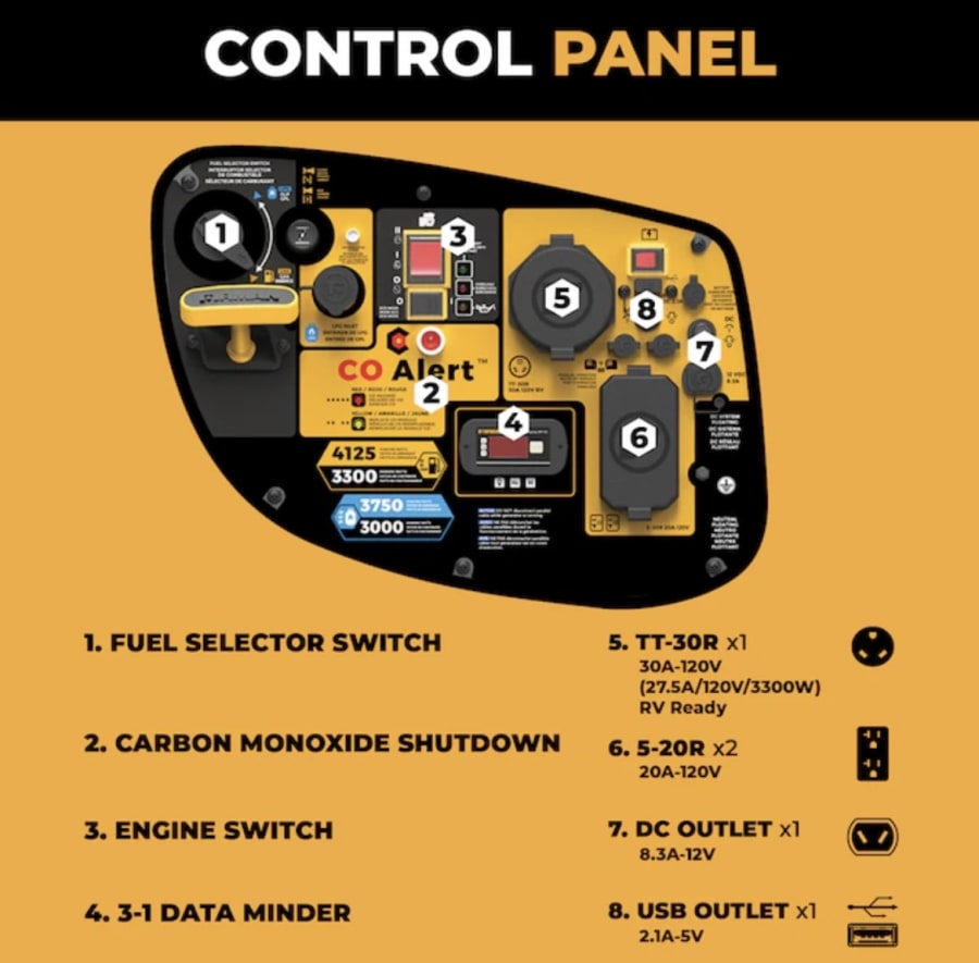 - Up to 4125 starting watts / 3300 running watts for sound systems and lights.
