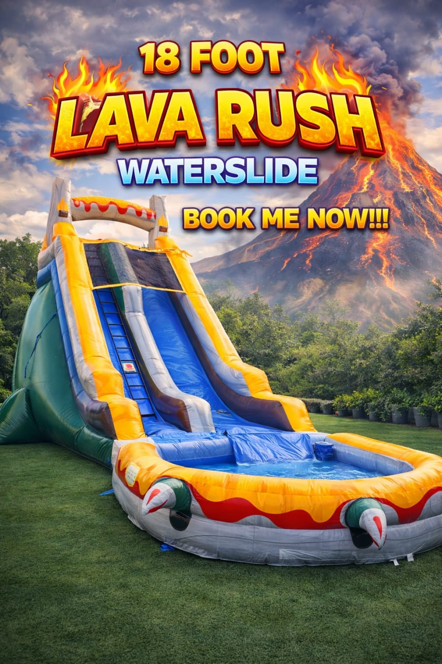 Ready to add excitement to your event? Reserve the 18’ Lava Rush Water Slide now. Fast delivery. Professional setup. Affordable rates. Call or book online and lock in your date before it sells out! 📅📞
